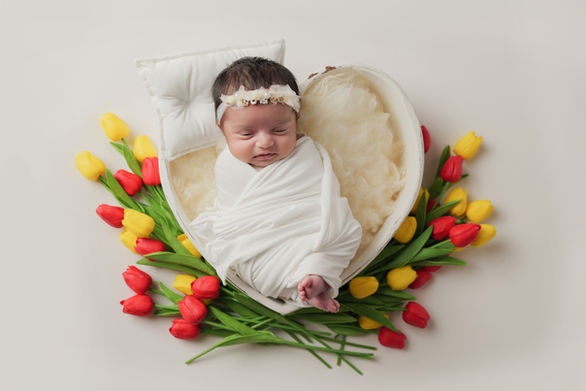 Sleepy and Curled Up: In their first few weeks, newborns tend to sleep a lot and are more likely to be in a deep slumber. You can position them in those adorable, curled-up poses without them fussing or moving around too much. It also makes it easier to capture those sweet, peaceful expressions.